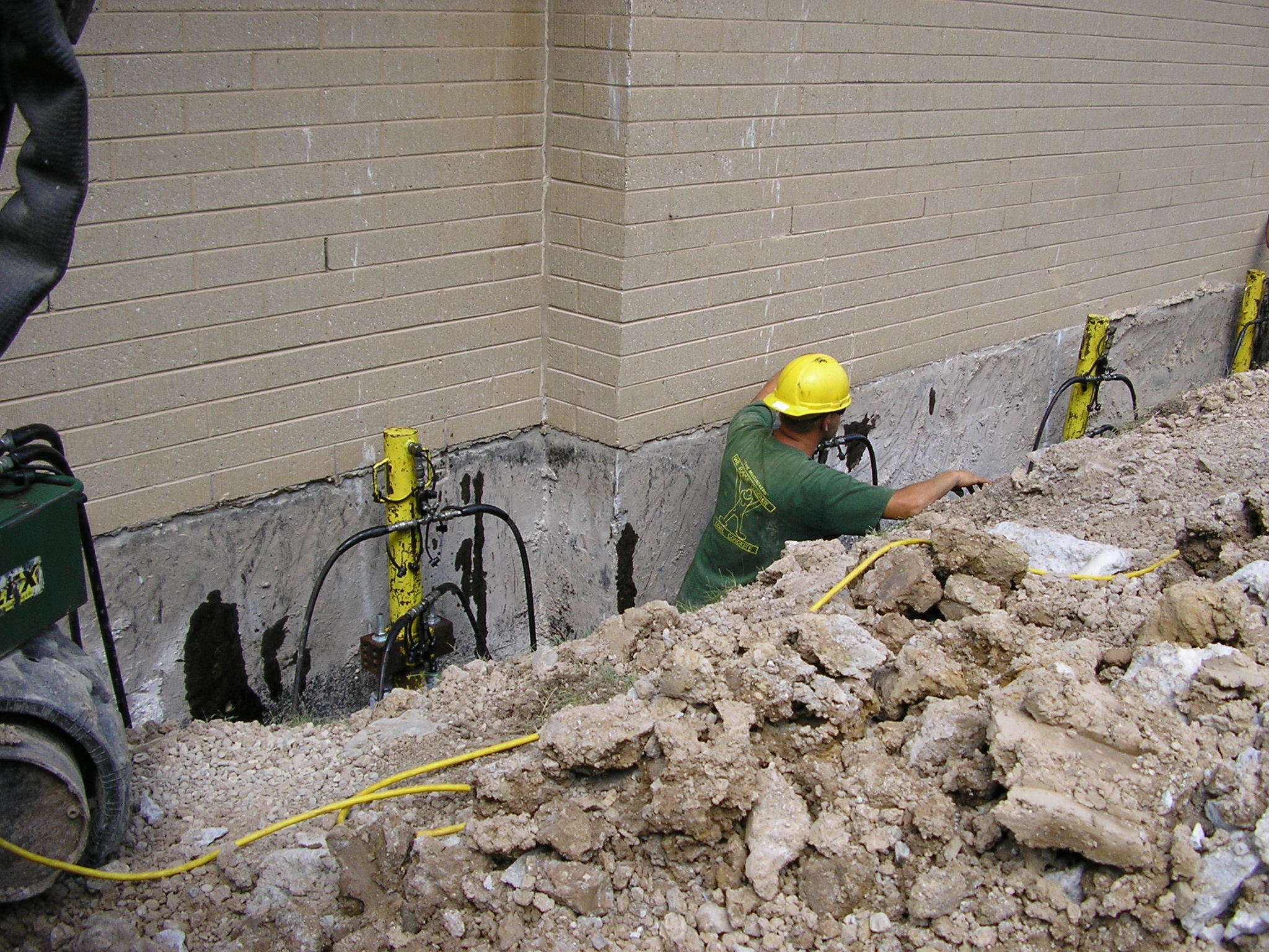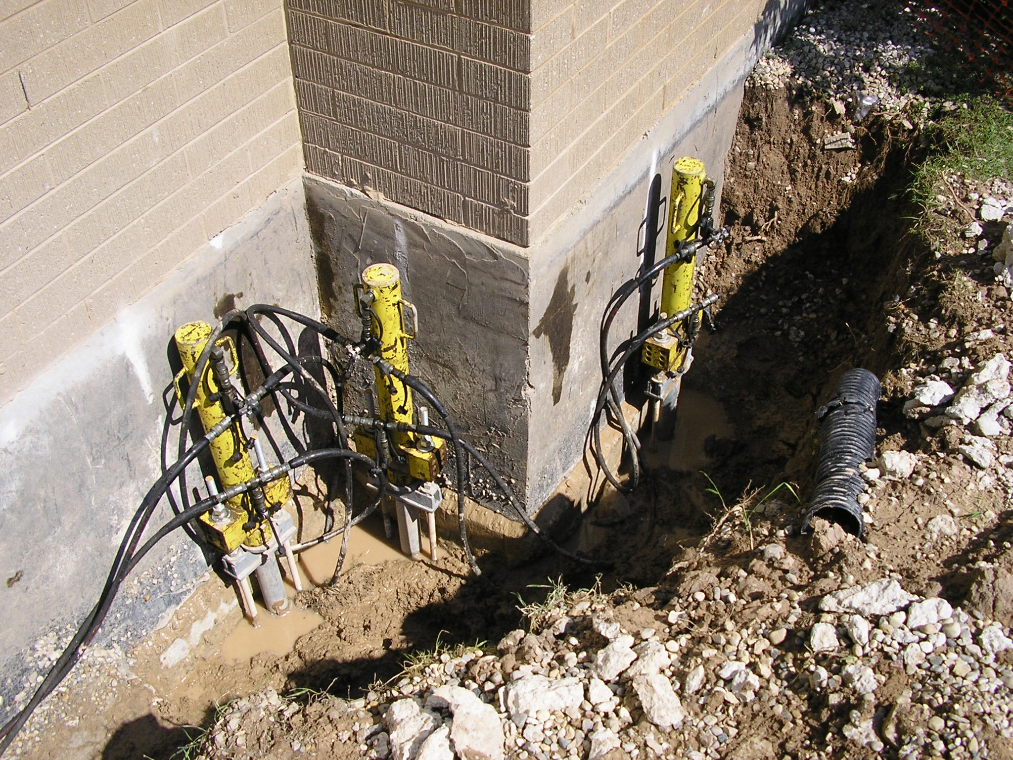 Driven using the building's weight as counterforce, then grouted for added strength. Best for severe settlement in expansive soils.